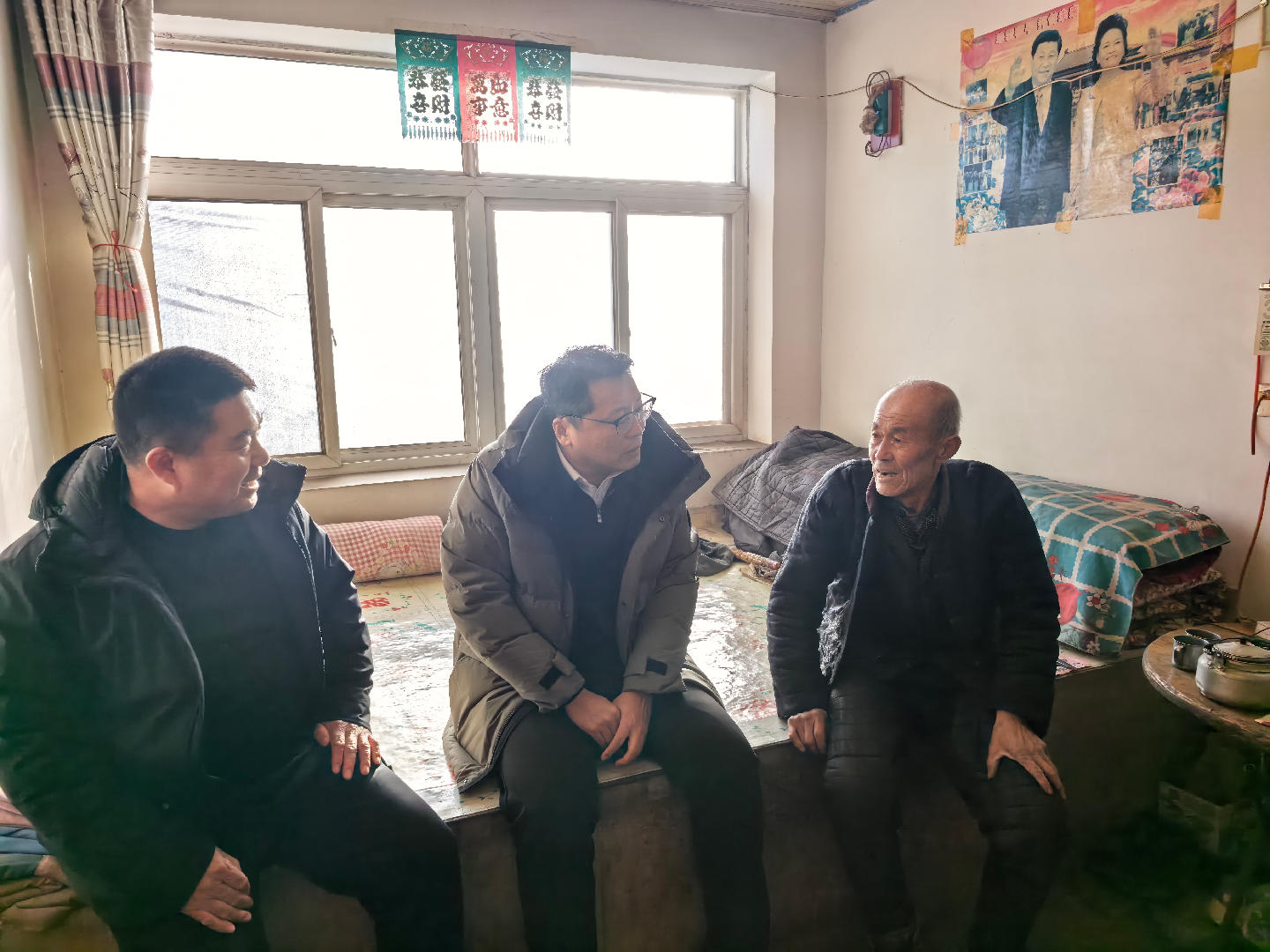 于国强强调,驻村帮扶是巩固拓展脱贫攻坚成果同乡村振兴有效衔接的关键抓手,驻村工作队要围绕乡村产业发展重点,聚焦困难群众核心需求,深化精准对接协作,切实解决群众急难愁盼问题,扎实做好年末收尾各项工作。特别是要充分发挥“上情下达、下情上达”的桥梁纽带作用,既要当好政策宣讲员,又要做政策落地的实干家,主动向上反映群众诉求。随后,于国强一行还入户走访部分困难群众和老党员,送去米、面、油等慰问物资,传递组织关怀。