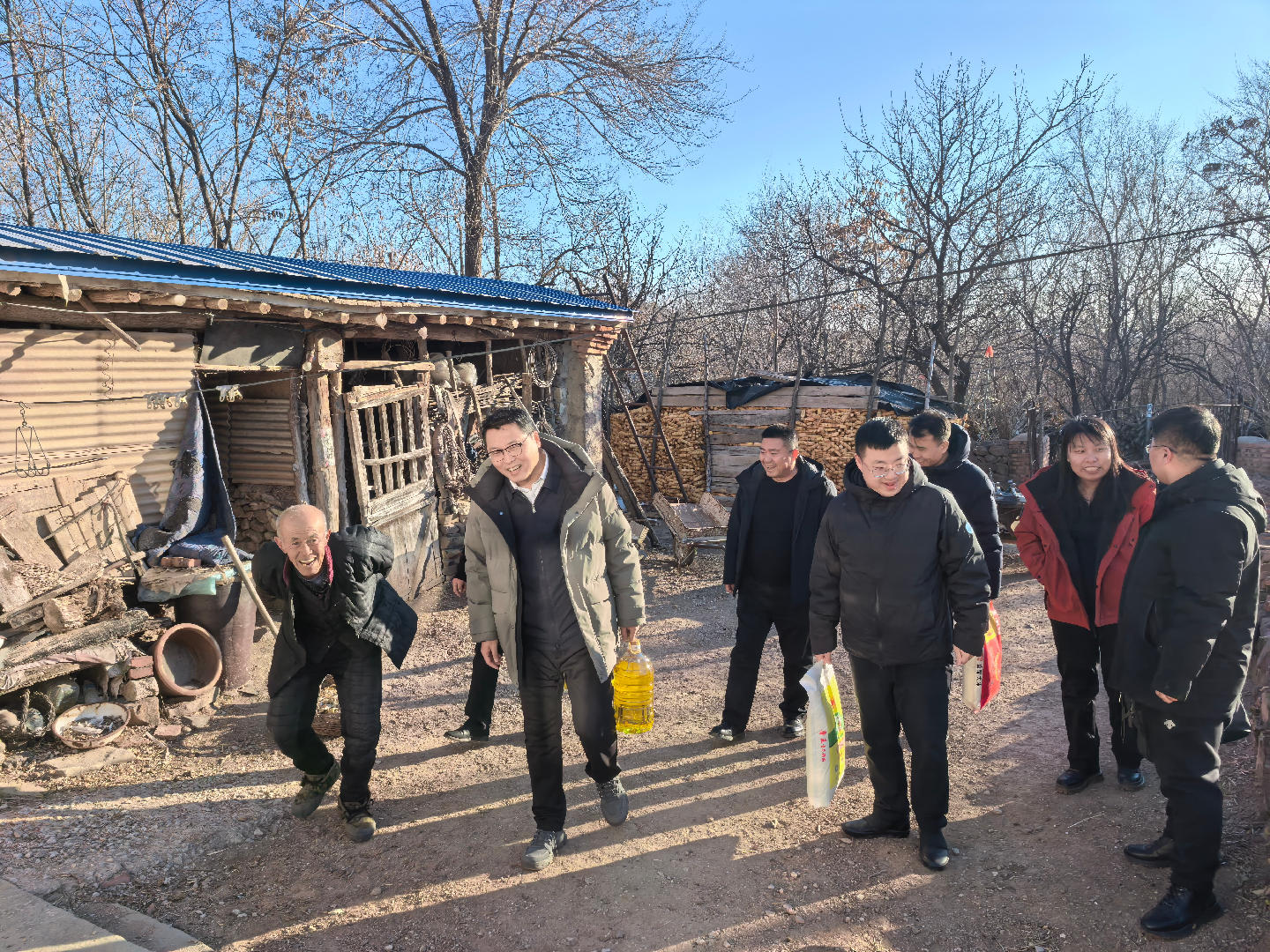 于国强强调,驻村帮扶是巩固拓展脱贫攻坚成果同乡村振兴有效衔接的关键抓手,驻村工作队要围绕乡村产业发展重点,聚焦困难群众核心需求,深化精准对接协作,切实解决群众急难愁盼问题,扎实做好年末收尾各项工作。特别是要充分发挥“上情下达、下情上达”的桥梁纽带作用,既要当好政策宣讲员,又要做政策落地的实干家,主动向上反映群众诉求。随后,于国强一行还入户走访部分困难群众和老党员,送去米、面、油等慰问物资,传递组织关怀。